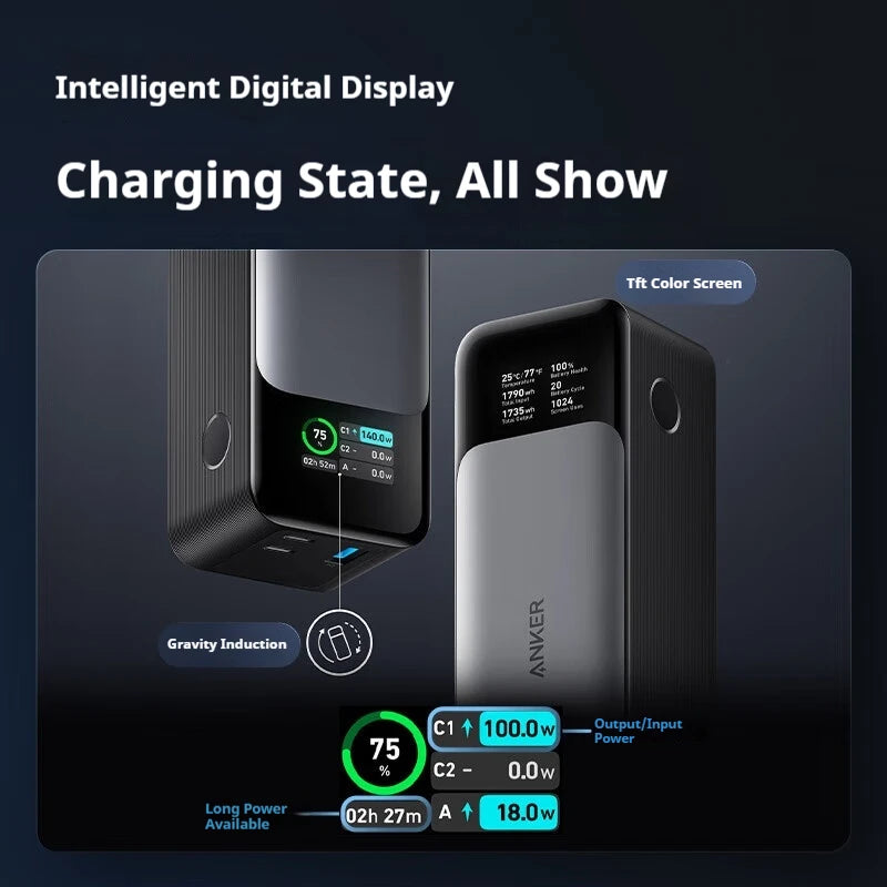Преносима външна батерия Anker Prime 737, 140 W, двупосочно бързо зареждане, 24000 mAh, за iPhone, Pro, MacBook, лаптоп