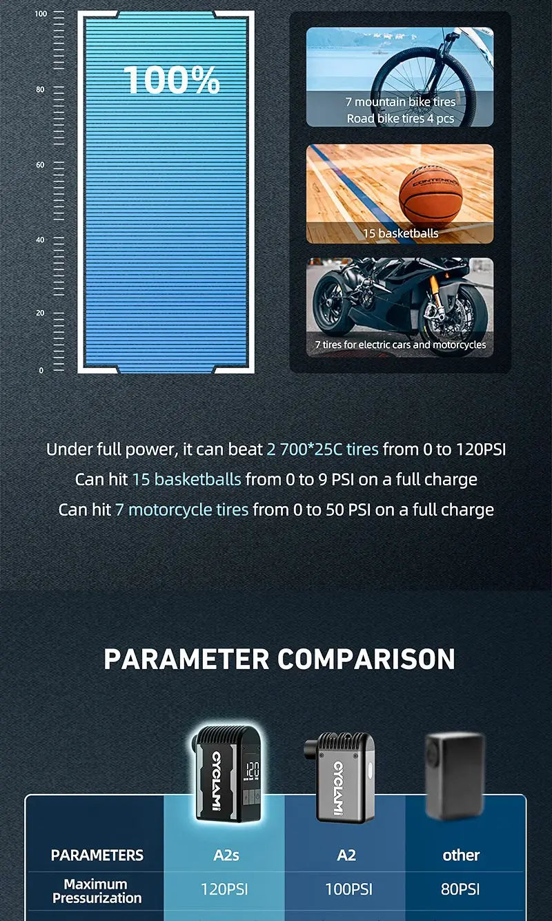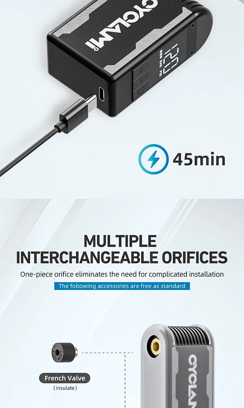 CYCLAMI A2S 120 PSI Мини електрическа помпа Преносима велосипедна безжична помпа за въздух Presta Schrader Valve FV AV Колоездене MTB Шосеен велосипед