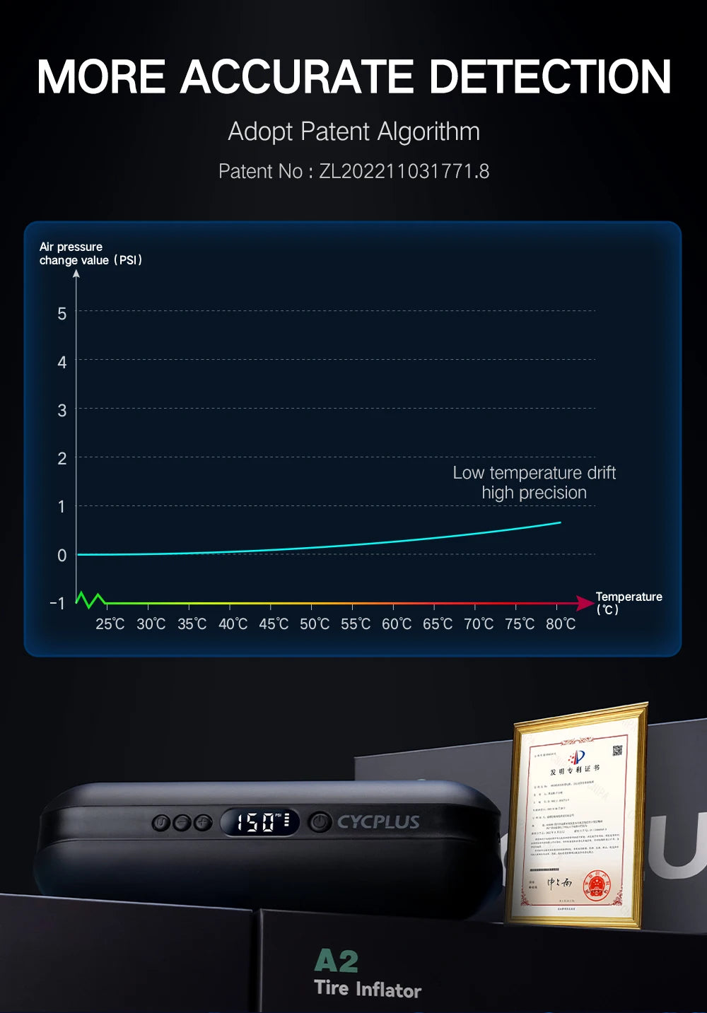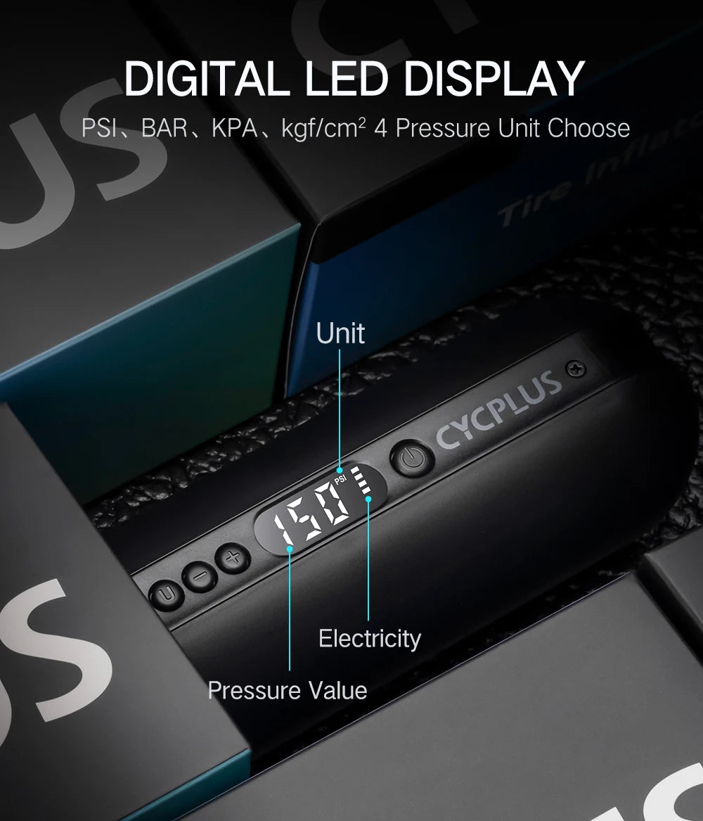CYCPLUS A2 Безжична помпа за велосипеди с високо налягане за автомобилни гуми 150 psi Преносима интелигентна помпа за надуване на въздух за планински велосипед