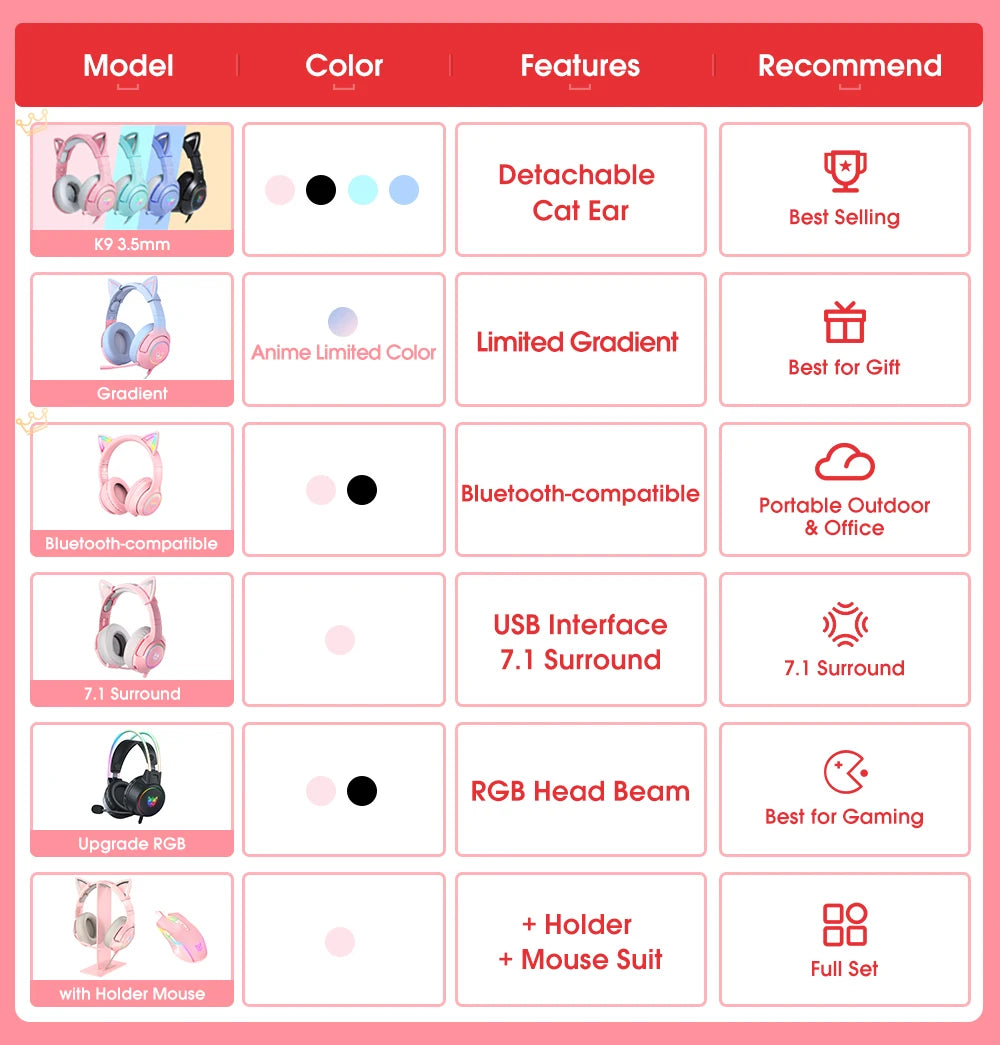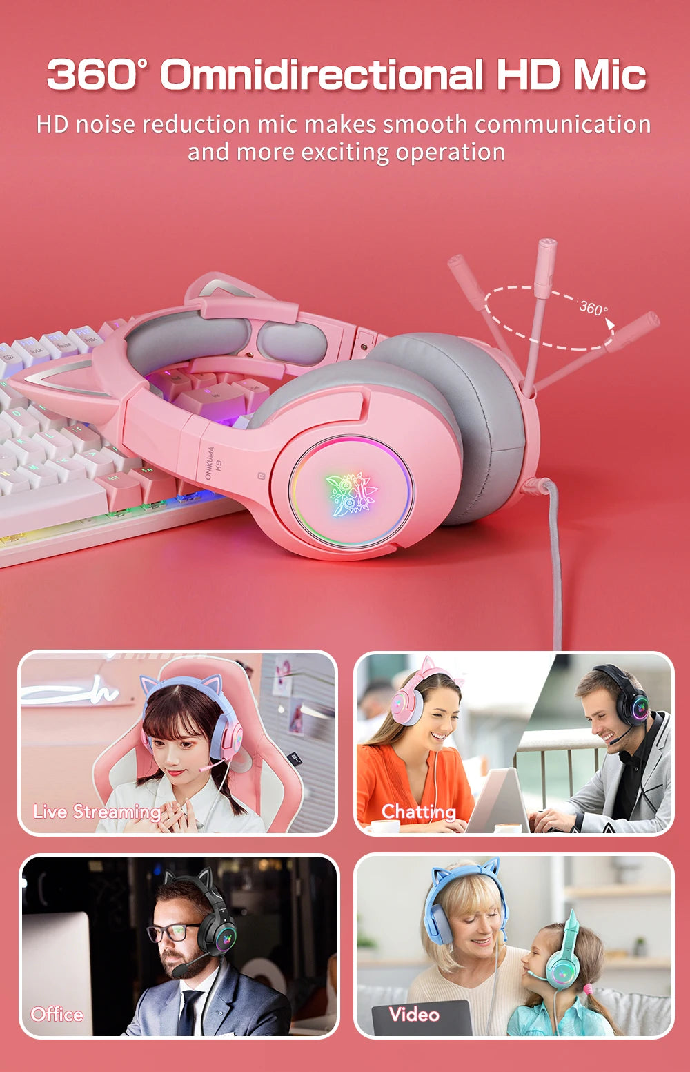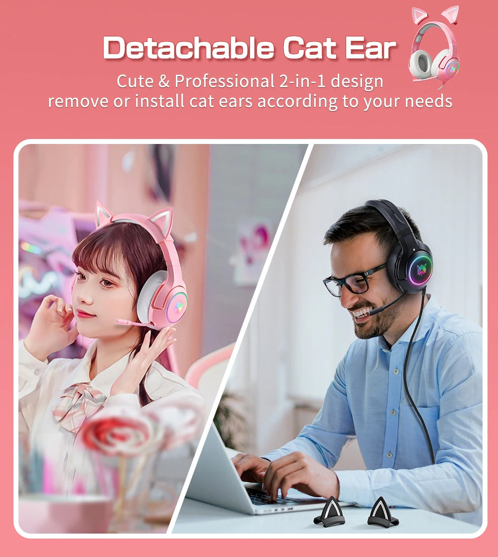 Геймърски слушалки ONIKUMA K9 с кабел и RGB осветление, гъвкави HD микрофони, геймърски съраунд компютърни слушалки за PC, PS5 и други.
