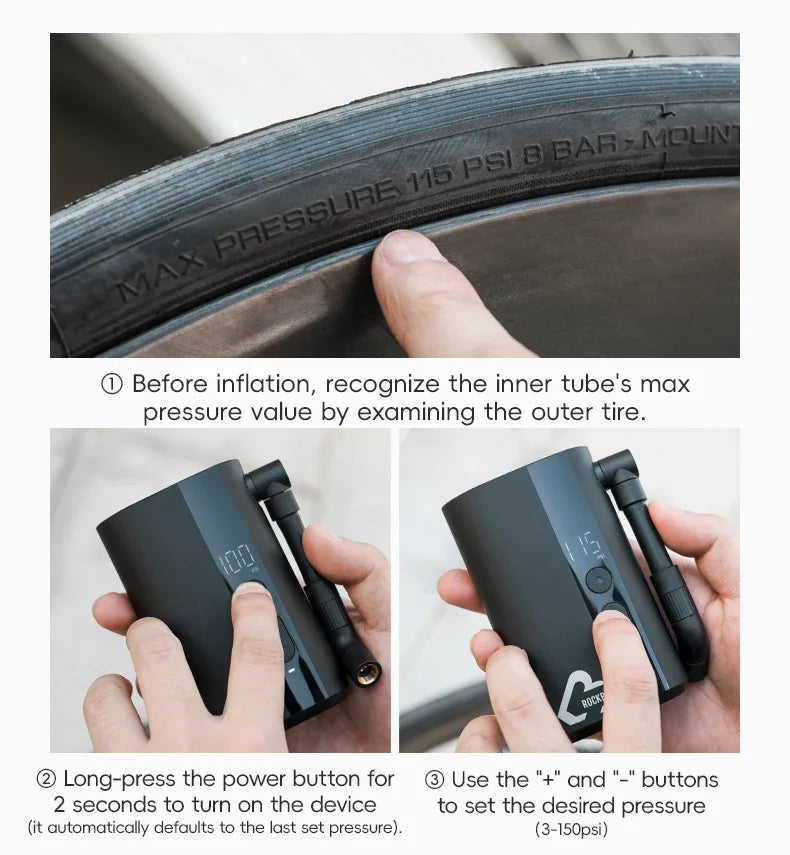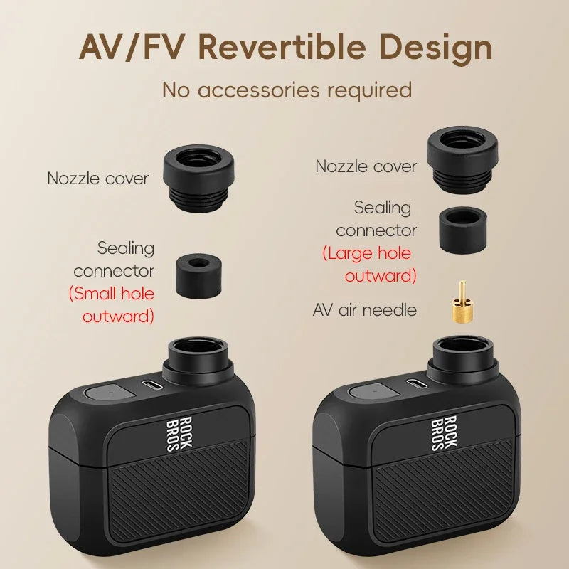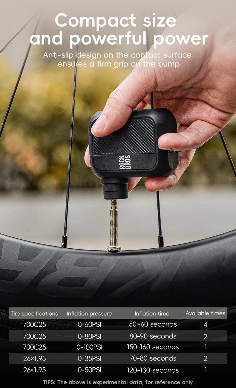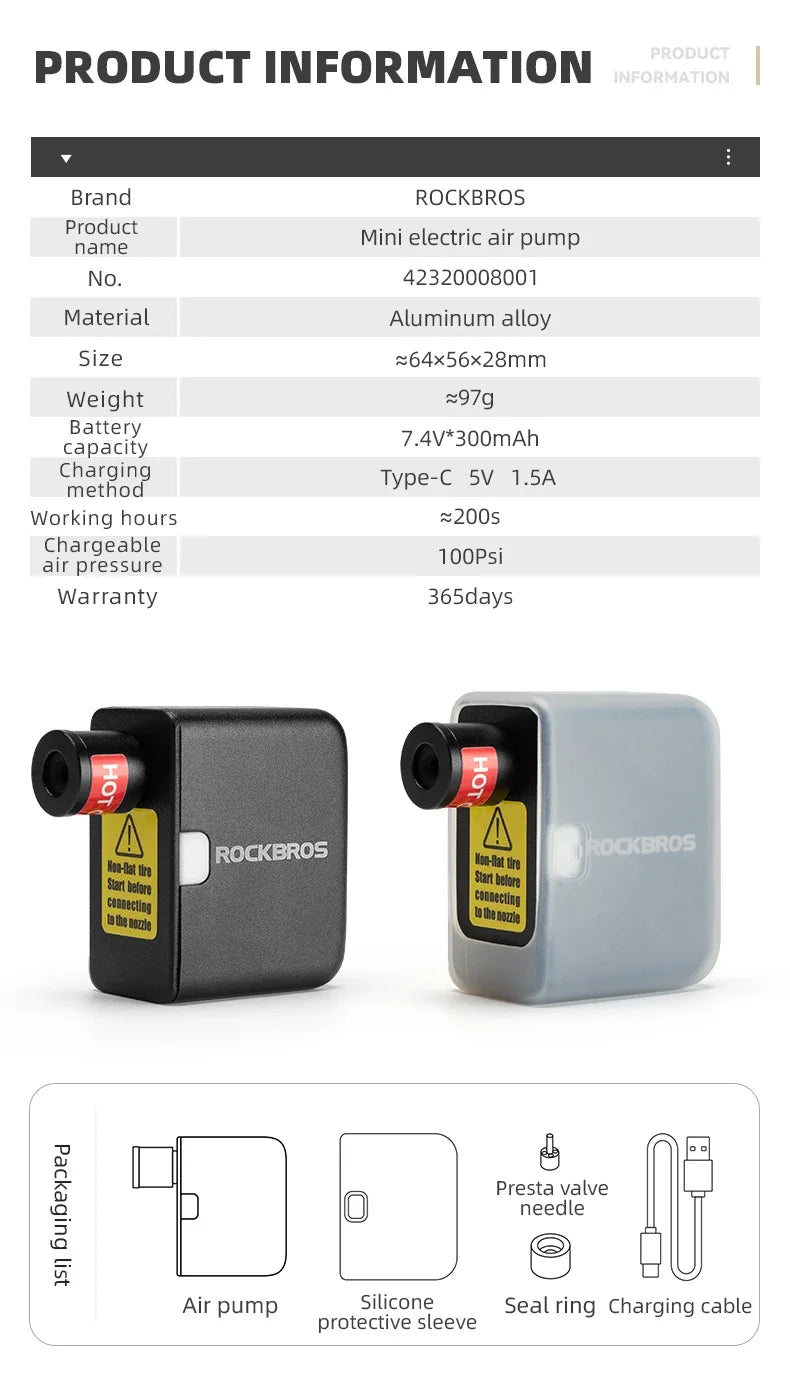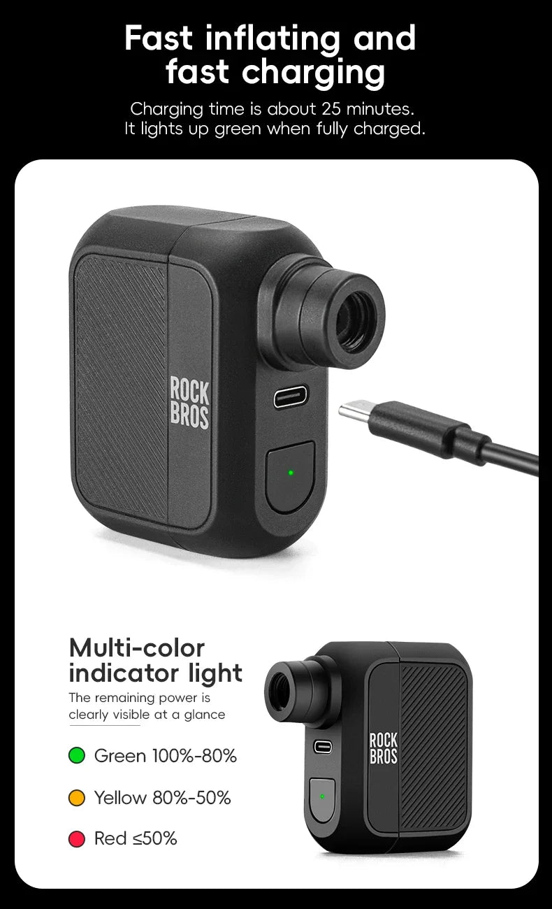 ROCKBROS Електрическа въздушна помпа Преносима 100PSI Велосипедна помпа Въздушен компресор Акумулаторна помпа за гуми 300mAh Капацитет на батерията