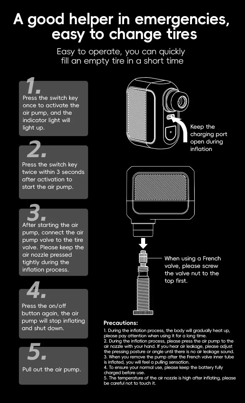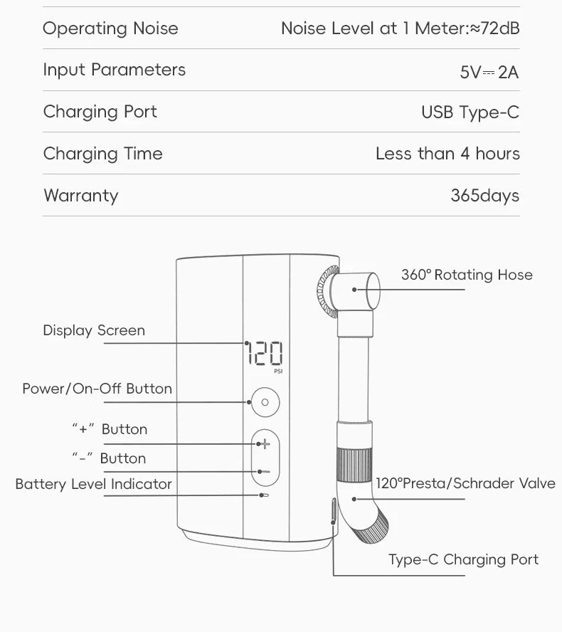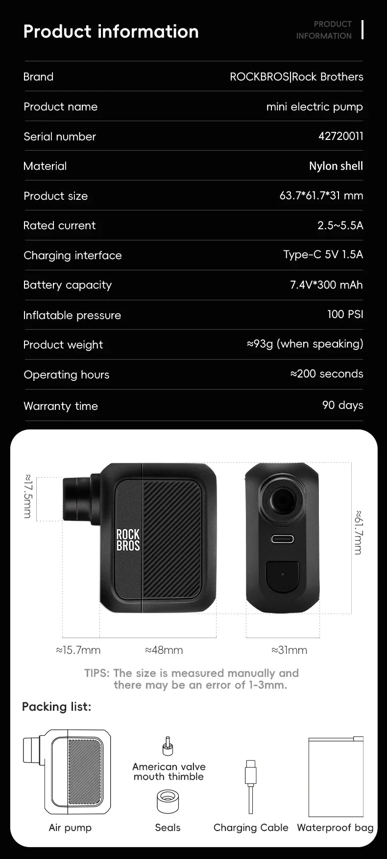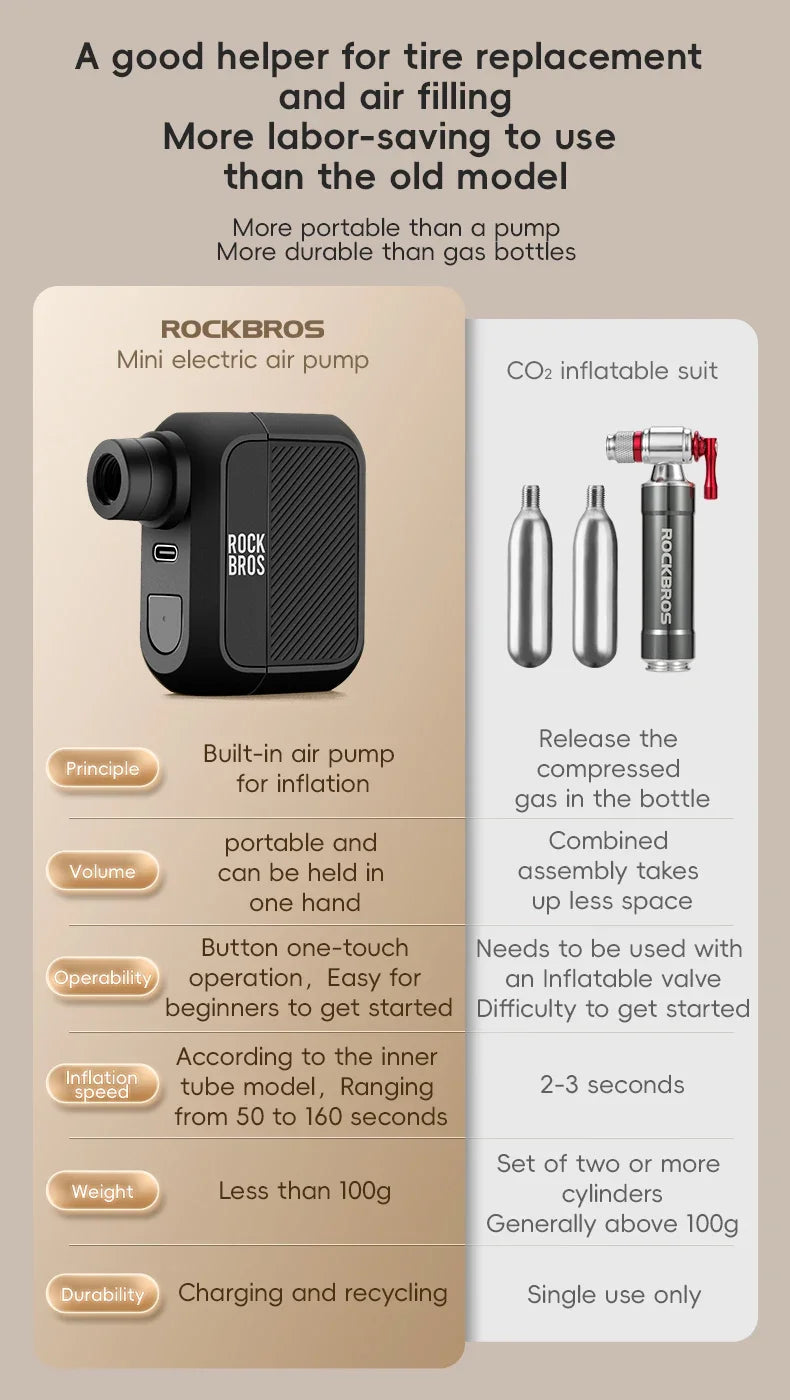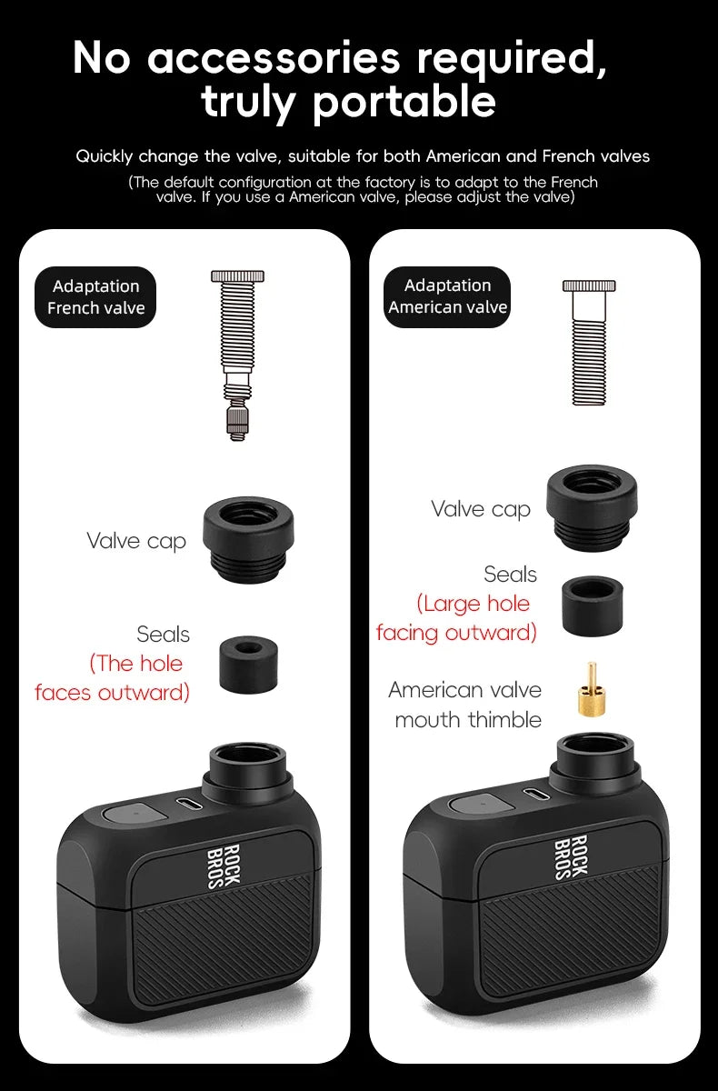 ROCKBROS Електрическа въздушна помпа Преносима 100PSI Велосипедна помпа Въздушен компресор Акумулаторна помпа за гуми 300mAh Капацитет на батерията
