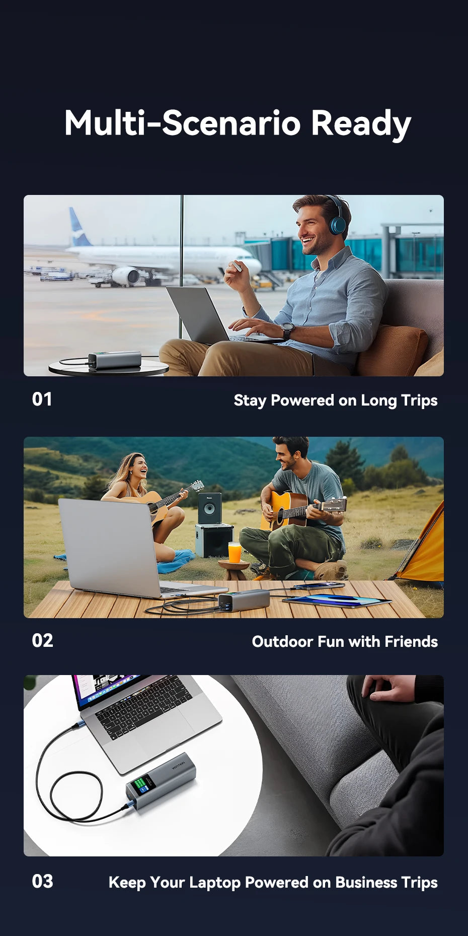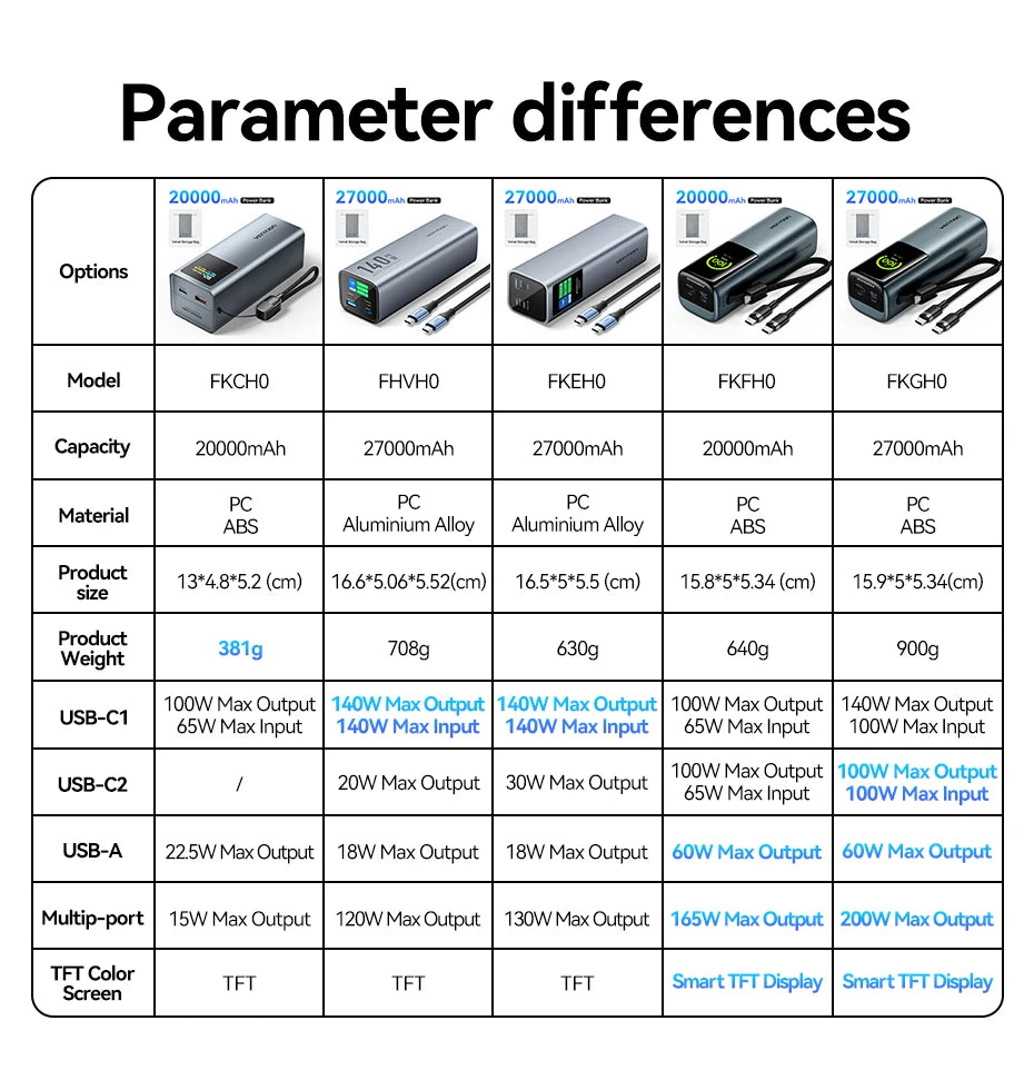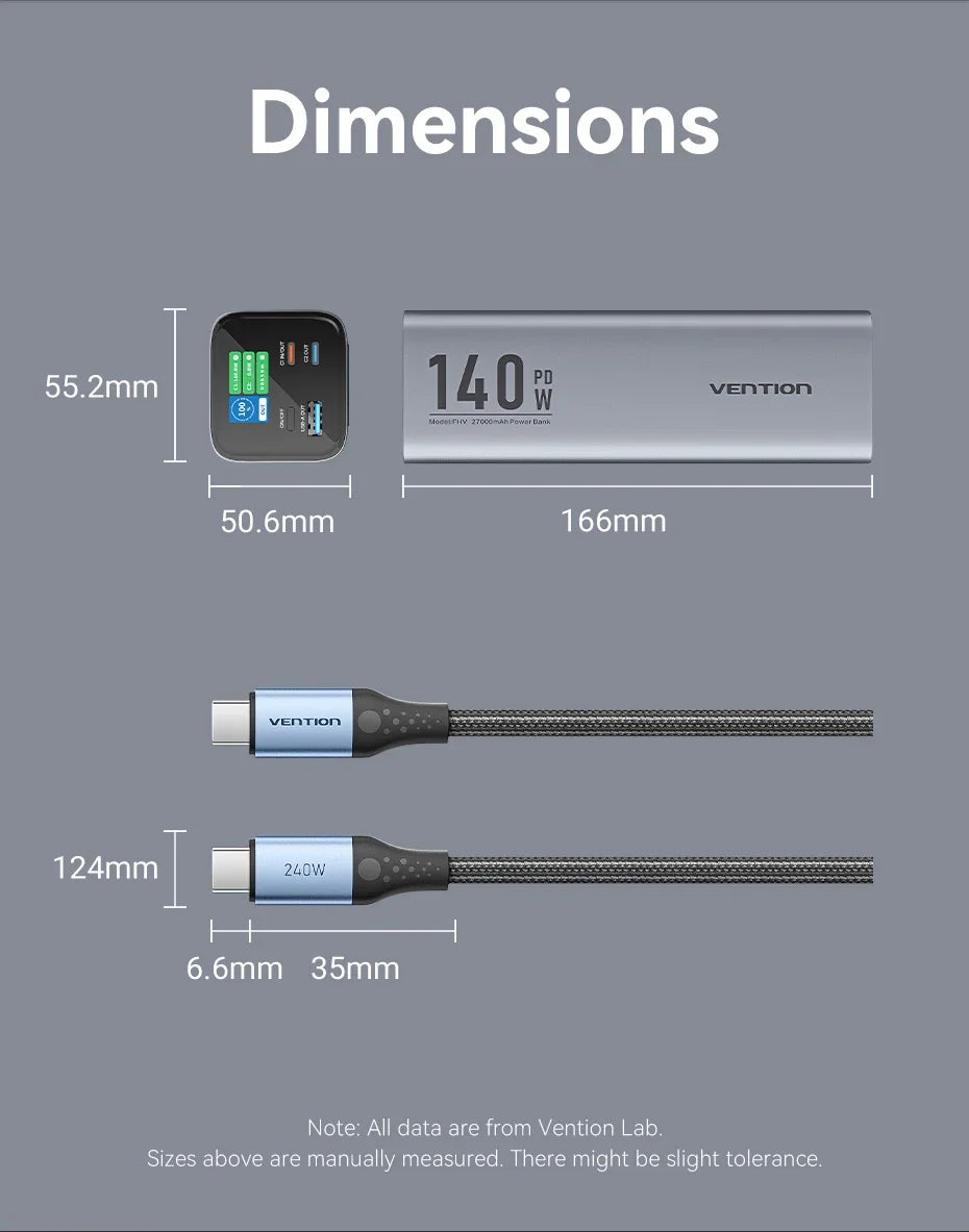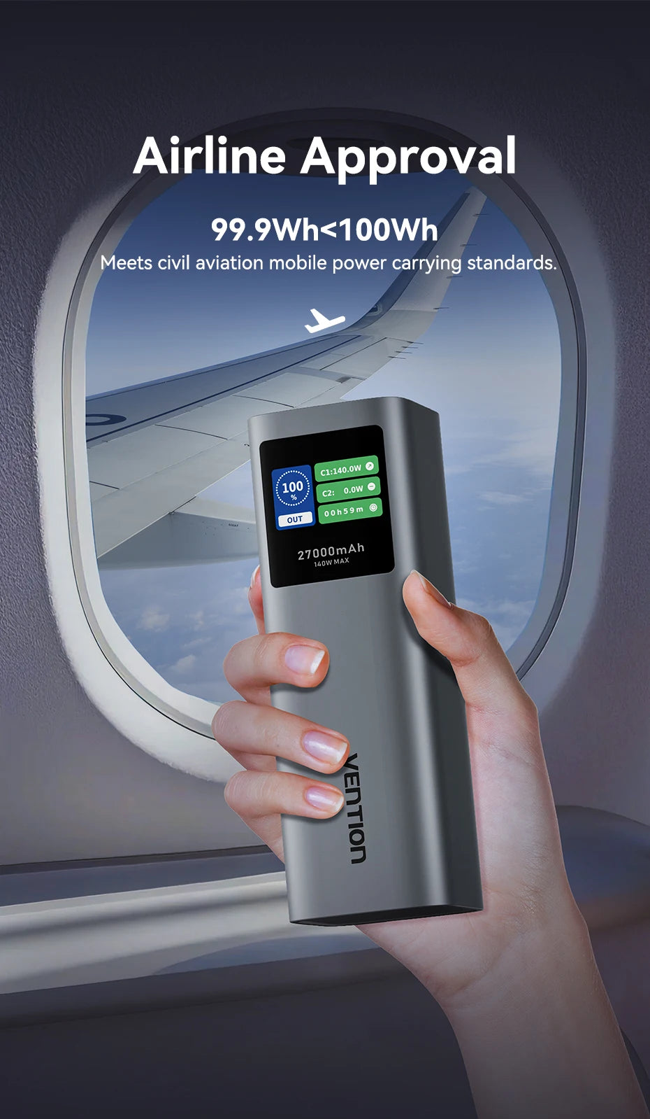 Преносима външна батерия Vention 140W 100W 27000mAh PD с бързо зареждане и външна батерия за лаптоп Xiaomi Macbook