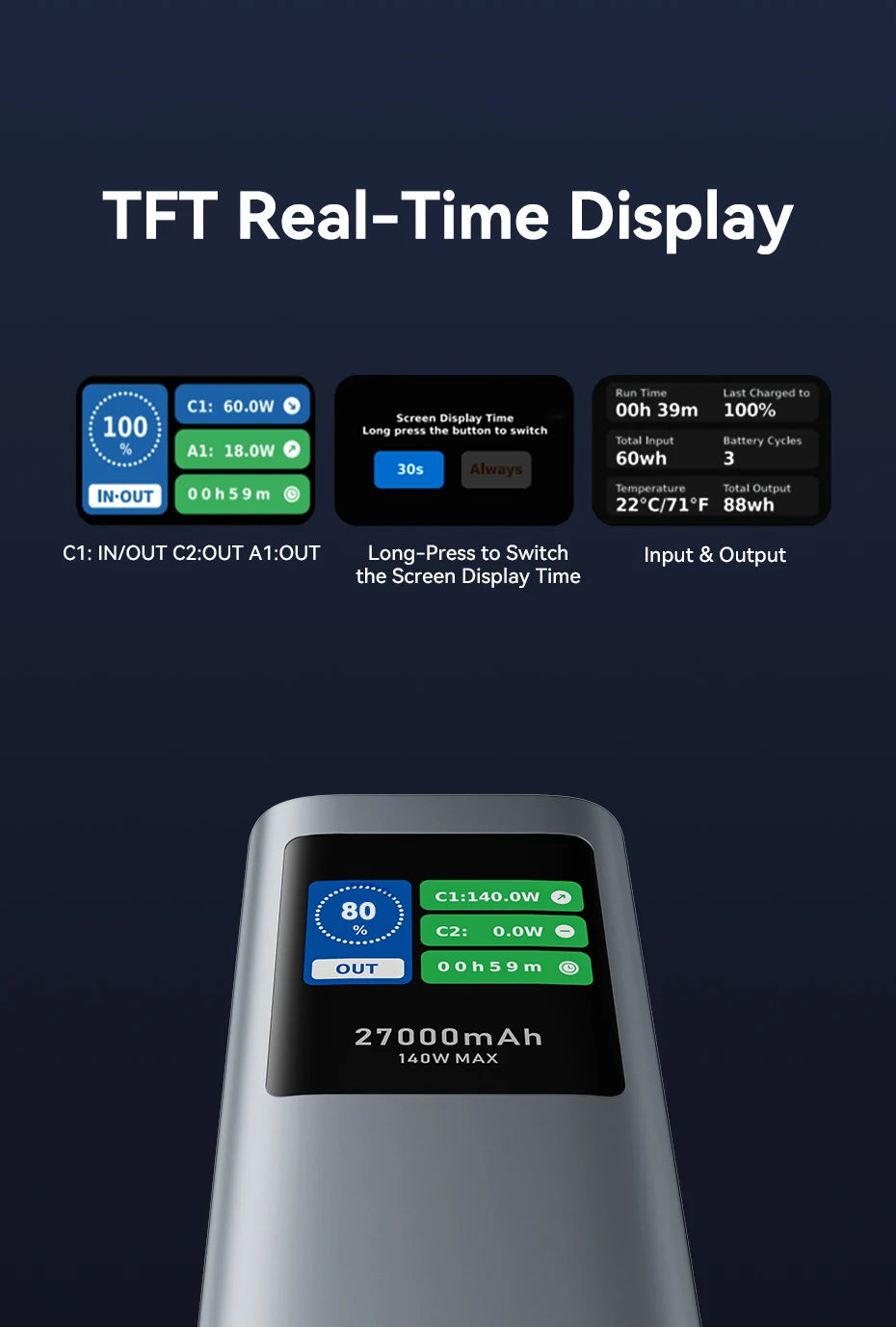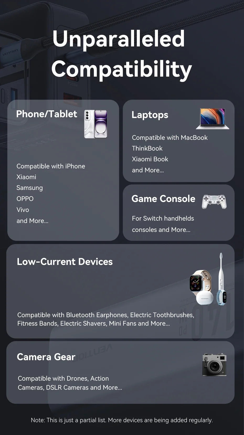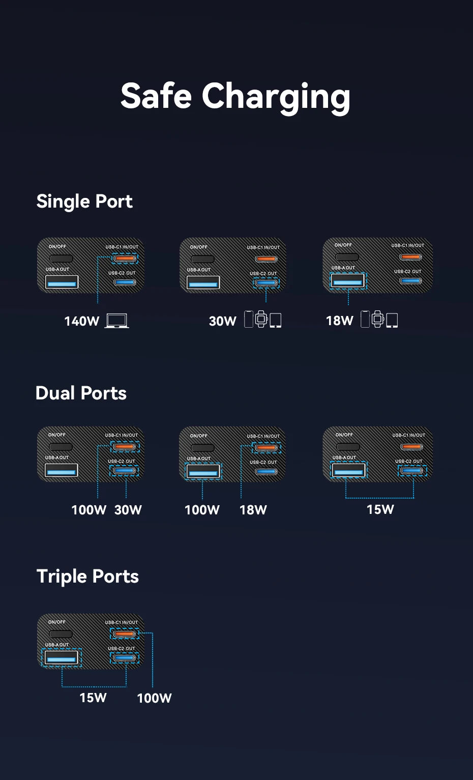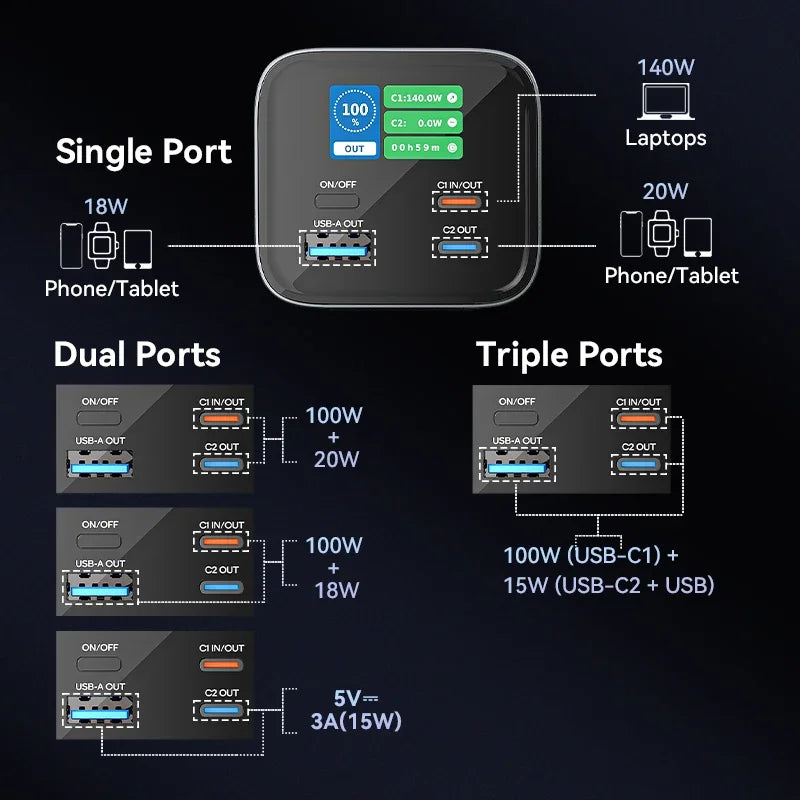 Преносима външна батерия Vention 140W 100W 27000mAh PD с бързо зареждане и външна батерия за лаптоп Xiaomi Macbook